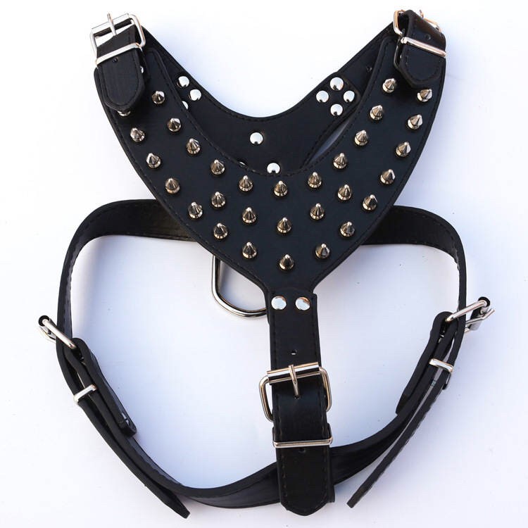 ハーネス 犬用 ブラック スタッズ トゲトゲ ワイルド スパイク チョーカー バックル 調節 ベルト ペット 安全 散歩 中型犬 大型犬 かっこいい おしゃれ 個性的 リード