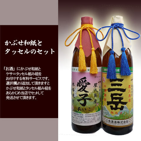 こちらのギフトオプションに対応しています かぶせ紙とタッセル 小瓶用リボンラッピング ギフト箱各種 商品情報 [商品名] 芋焼酎 三岳 900ml瓶 [商品説明] 【鹿児島/いも芋焼酎25°/さつまいも・米麹】 三岳酒造(株) 世界自然遺産『屋久島』の原生林でろ過された水で仕込まれた、まろやかな飲み口が評判の芋焼酎です。